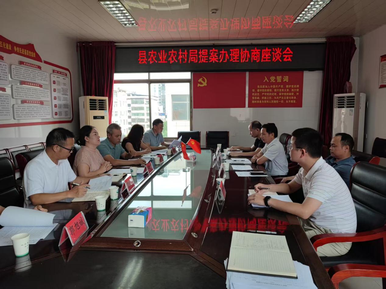 7月31日,縣農業農村局政協提案辦理協商座談會召開,縣政協副主席許素珍、提案委主任董柏清、縣政府辦副主任茹志彬、縣農業農村局局長劉科等參加會議,縣農業農村局邀請相關政協提案委員參加會議。