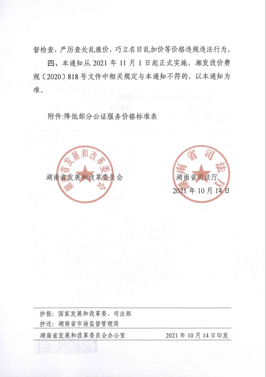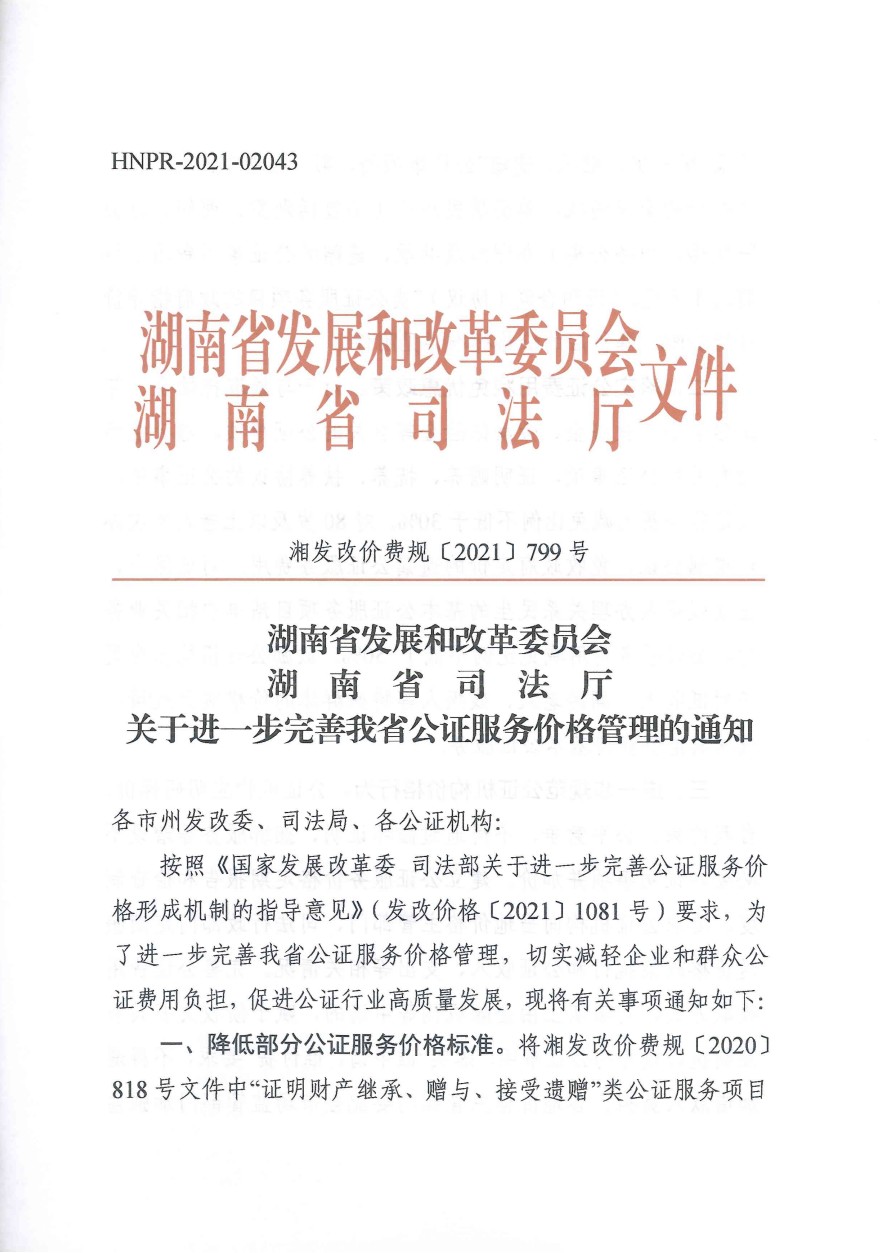 湖南省發(fā)展和改革委員會湖南省司法廳關于進一步完善我省公證服務價格管理的通知