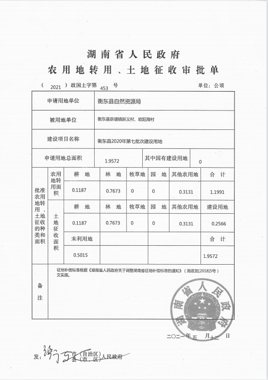 衡東縣2020年第七批次建設用地