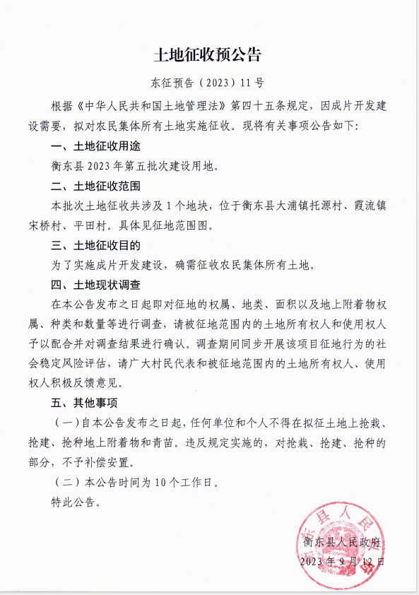 土地征收預(yù)公告東征預(yù)告[2023]11號