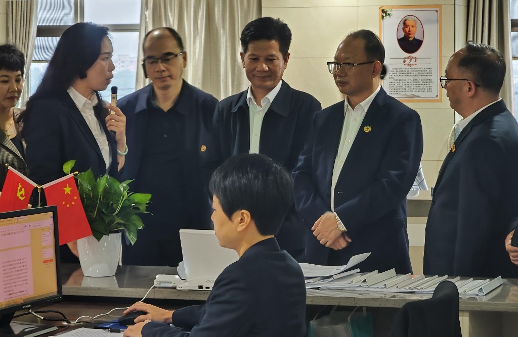 段忠賢一行先后來到縣政務服務中心24小時自助服務區、人社窗口、醫保窗口、不動產窗口、工程建設項目審批綜合窗、12345政務服務便民熱線中心等地,實地察看中心布局、窗口設置以及各功能區管理運行情況,并與辦事群眾、窗口工作人員面對面交流,查閱工作記錄,詳細了解服務事項、辦事流程、便民利民措施及業務工作開展情況。