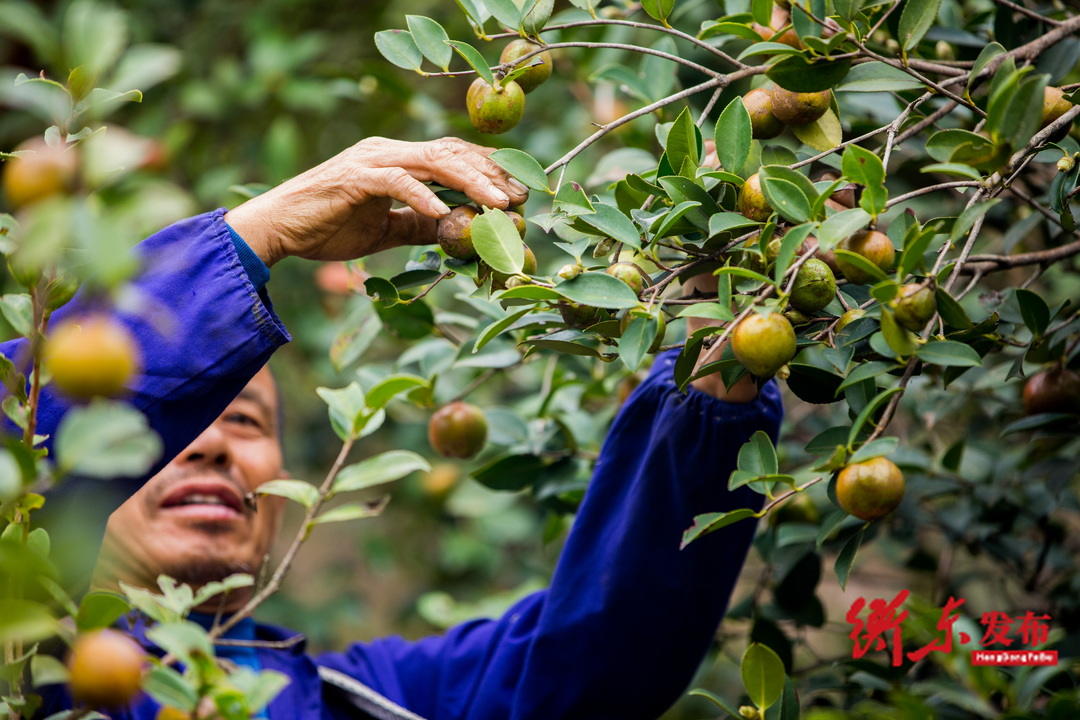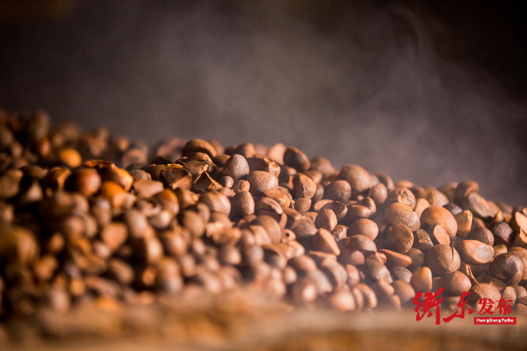 走進衡東縣高湖鎮小泥巴榨油坊,村民們正在忙著搬運茶籽,忙得不亦樂乎。去殼的油茶果通過篩選、烘干、碾粉、制餅、壓榨等多道工序,得到澄清透明、氣味清香的茶油。這種依托現代機械、通過原始工藝壓榨出來的山茶油保質期長,營養價值高,深受市場青睞。