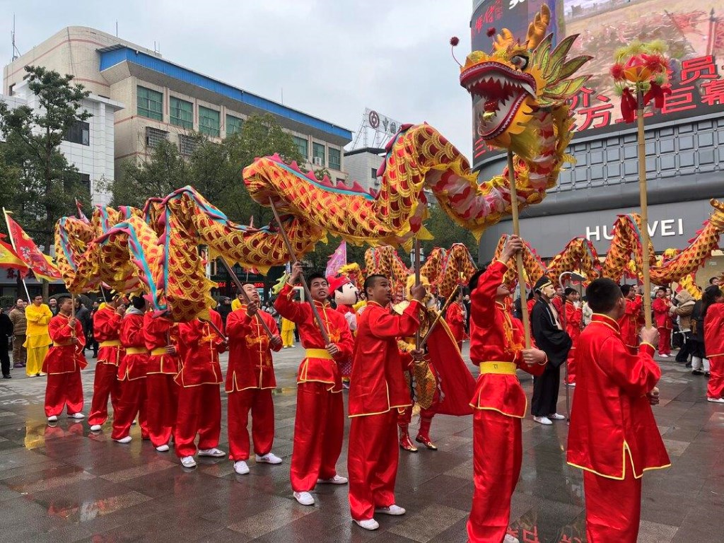 午后時分,龍獅表演正式拉開帷幕。舞龍隊率先登場,巨龍在隊員舞動下,時而盤旋、時而騰飛,激昂鼓點中,群眾喝彩不斷。隨后舞獅隊亮相,獅子閃展騰挪,接連做出跳躍、翻滾等高難度動作,憨態又威武,將現場氣氛推向高潮。市民們滿臉笑意,有的用手機拍照,有的和醒獅合影,現場熱鬧又溫馨。