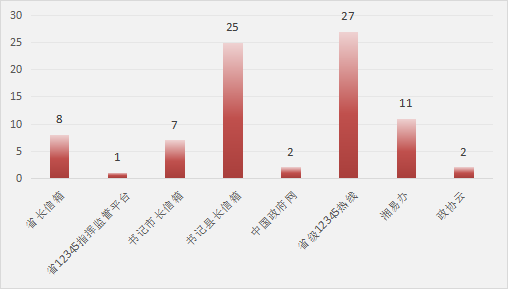 (二)非話務渠道受理情況。2月,12345熱線共受理非話務渠道訴求83件,其中,省長信箱轉派工單8件,省12345指揮監管平臺轉派工單1件,書記市長信箱信件7封,書記縣長信箱信件25封,中國政府網轉派工單2件,省級12345熱線轉派工單27件,湘易辦轉派工單11件,政協云轉派工單2件。