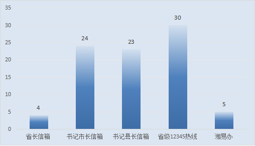 (二)非話務渠道受理情況。熱線共受理非話務渠道訴求83件,其中,省長信箱轉派工單4件,書記市長信箱24件,書記縣長信箱23件,省級12345熱線轉派工單30件,湘易辦轉派工單5件。