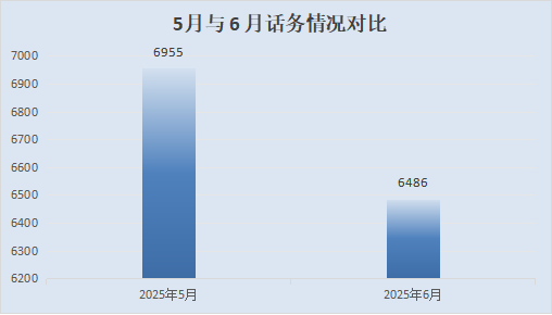 2025年6月,12345熱線話務(wù)總數(shù)為6486個,非話務(wù)受理渠道(含省長信箱、書記市長信箱、國家政務(wù)服務(wù)平臺、中國政府網(wǎng)、書記縣長信箱、政協(xié)云、湘易辦、省級12345熱線等)受理各類訴求82件,辦結(jié)41件。