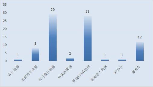 (二)非話務(wù)渠道受理情況。熱線共受理非話務(wù)渠道訴求82件,其中,省長信箱轉(zhuǎn)派工單1件,書記市長信箱信件8封,書記縣長信箱信件29封,中國政府網(wǎng)轉(zhuǎn)派工單2件,省級12345熱線轉(zhuǎn)派工單28件,衡陽市人民網(wǎng)轉(zhuǎn)派工單1件,政協(xié)云轉(zhuǎn)派工單1件,湘易辦轉(zhuǎn)派工單12件。