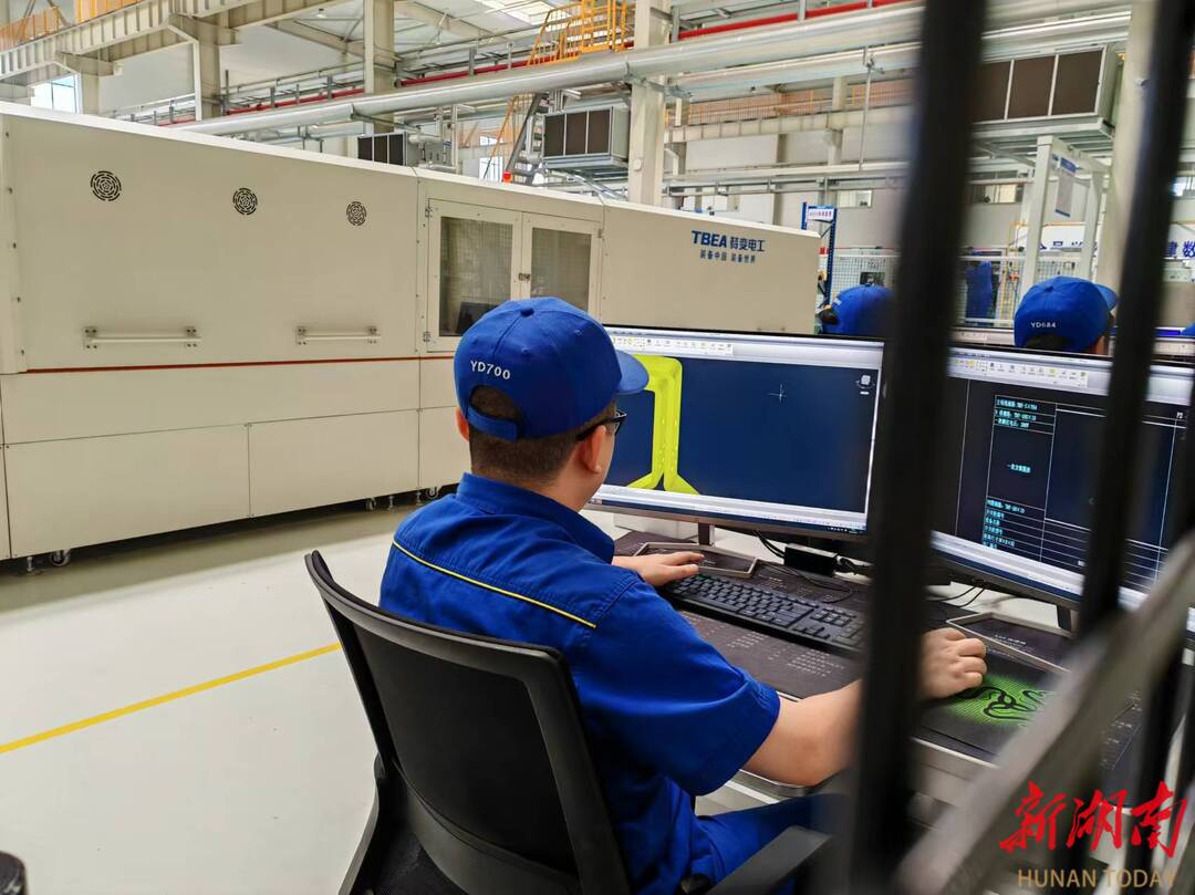 鈑金柔性加工生產線上,一名員工正在操縱機械臂切割鋼板。湖南日報全媒體記者 唐曦 攝