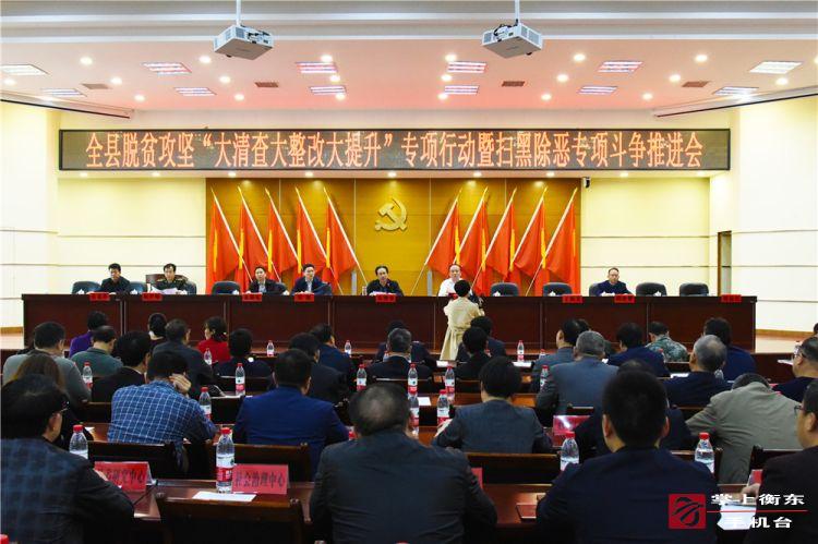 (衡東縣廣播電視臺記者  王 崢  通訊員  顏伶俐)4月18日上午,全縣脫貧攻堅“大清查大整改大提升”專項行動暨掃黑除惡專項斗爭推進會在武家山會務中心召開。縣委書記吳偉生講話,縣委副書記、縣長徐志毅主持會議。