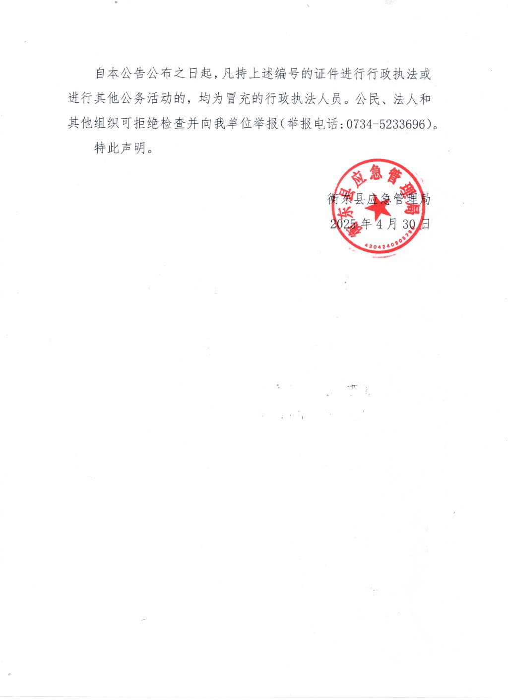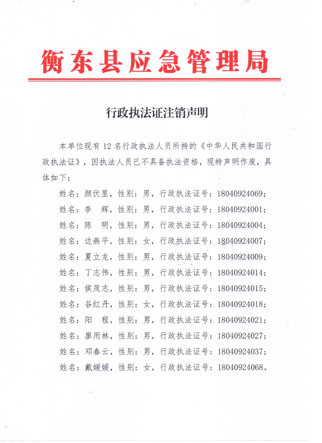 行政執法證注銷聲明