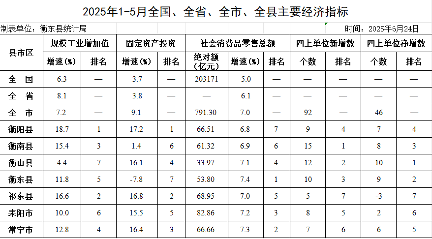 來源:縣統計局 ???? 發布時間:2025-06-24