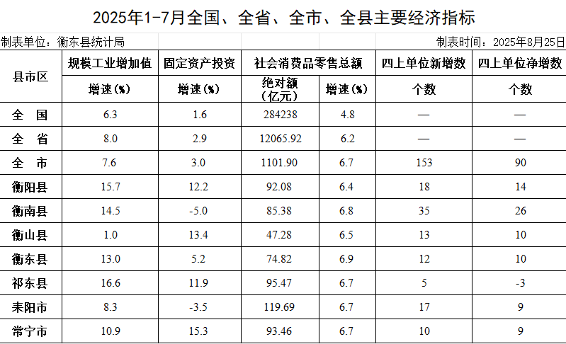 2025年1-7月主要經(jīng)濟(jì)指標(biāo)